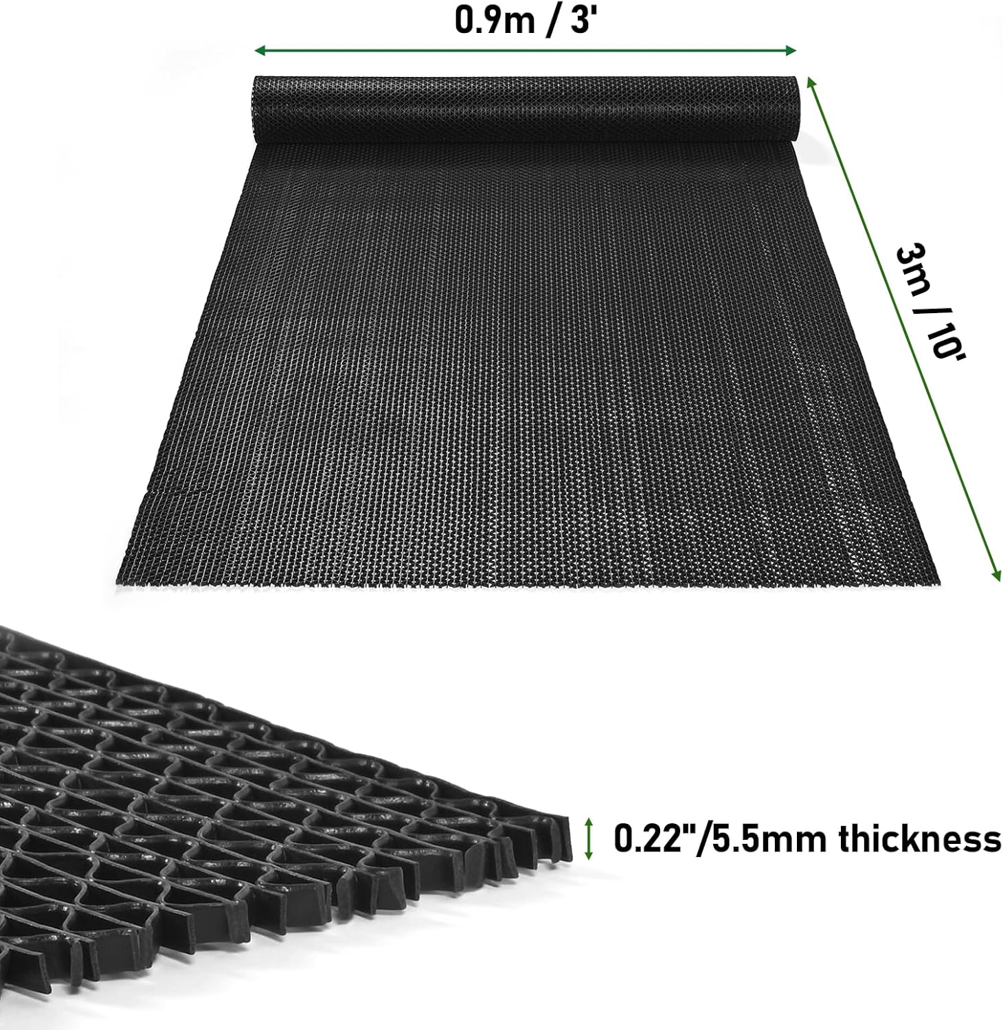 jxgzyy Commercial Drainage Mat Non Slip Drainage Floor Matting 3'x10' Heavy Duty Swimming Pool Mat for Restaurant Kitchen Bathroom Bar Garden Outdoor Wet Area, Black