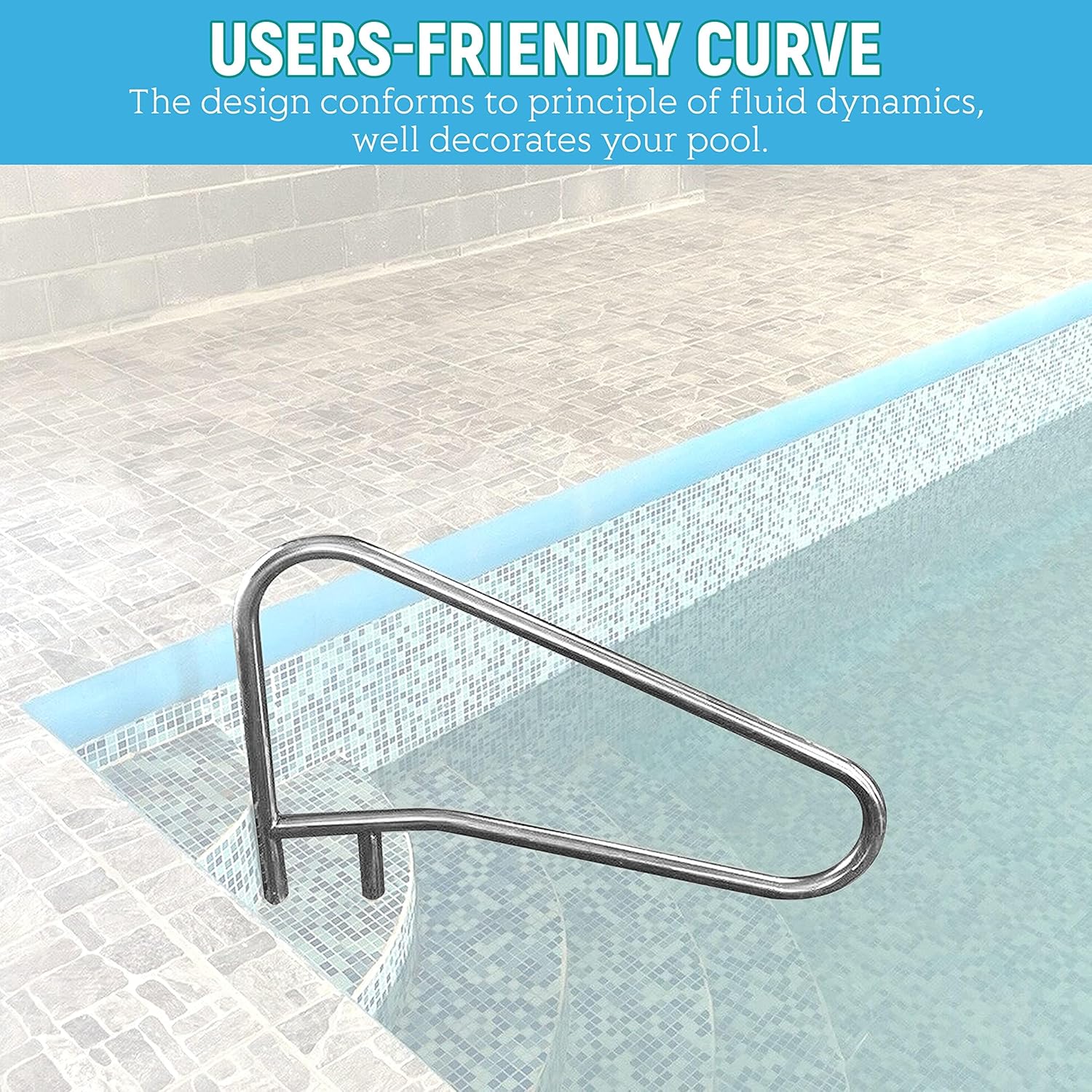 - Pool handrail features users-friendly curve.