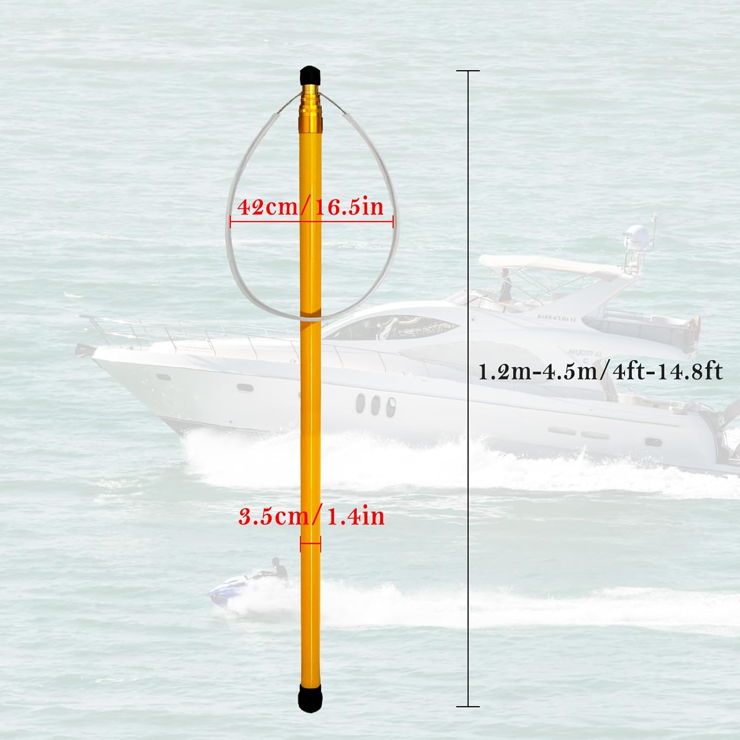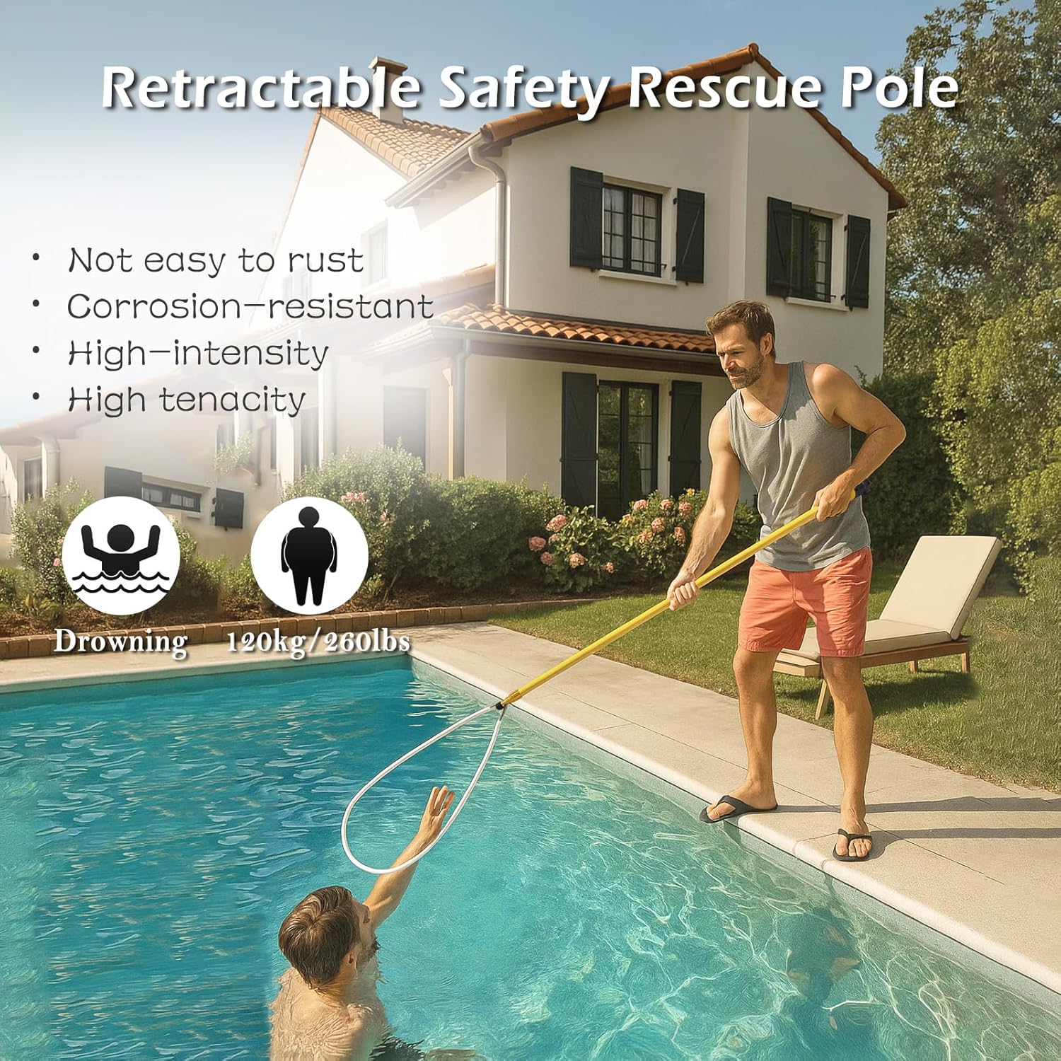 The telescopic pool rescue hook is designed for water rescue and pool safety, with quick deployment in emergencies.